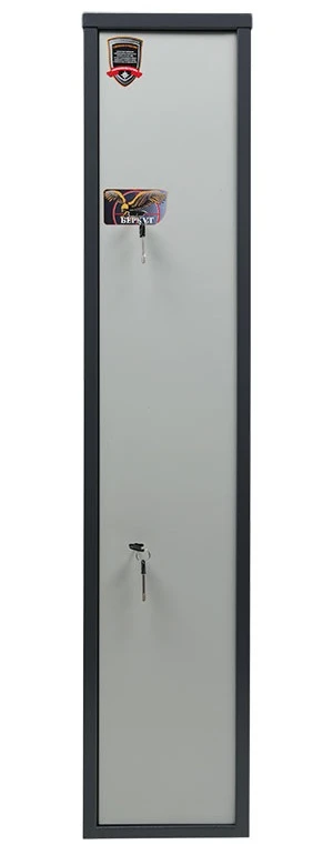 - В верхней части сейфа расположен трейзер (запирающееся на ключ отделение для патронов) размерами 198×296×140 мм. За узким трейзером остаётся свободное пространство, которое позволяет хранить ружья, по длине соответствующие высоте всего сейфа.