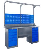- При желании вы можете оснастить верстак дополнительными комплектующими по вашему выбору. Предлагаются различные держатели, полки и перфорированные панели, комплекты розеток, освещение.